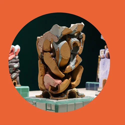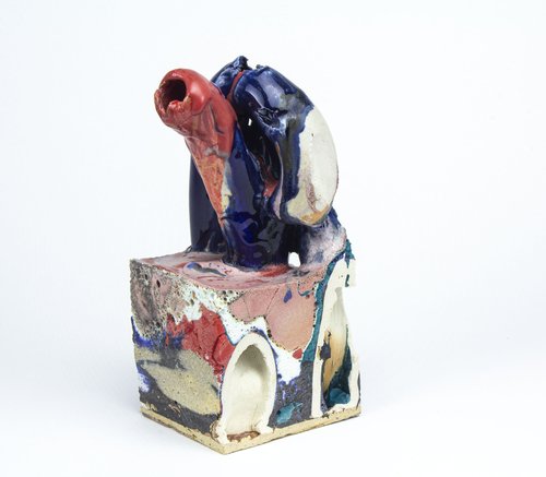 With her studio focus on practice, Renata Cassiano Alvarez was prompted to ask herself what would happen if the glaze became the structure of her ceramic sculptures. In her recent works, Cassiano Alvarez transforms glaze from surface material to the structure itself. Her unique process, molding and cutting colored porcelain and glaze, echoes methods used in the Studio Ceramics era of the 1950s. The resulting pieces are reminiscent of archaeological artifacts as well as reference the industrial tile work ubiquitous throughout Mexico and other Latin American countries.